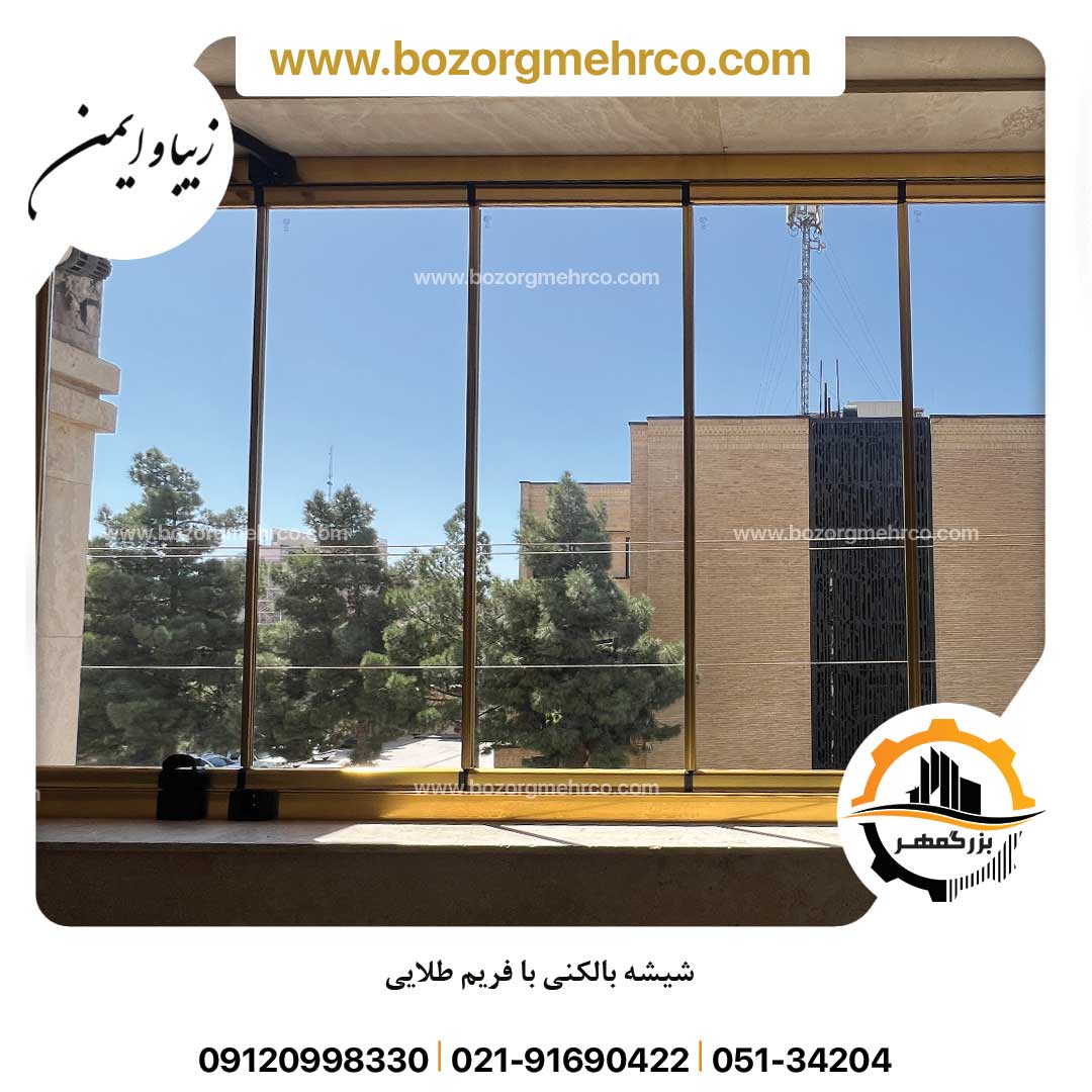 پنجره بالکنی با فریم آلومینیومی طلایی برای یکی از طبقات ساختمان مسکونی نصب و اجرا شده است. ابعاد کلی آن 150 سانتی متر در 400 سانتی متر می باشد. ضخامت شیشه های بکار رفته در شیشه بالکنی 8 میلیمتر می باشد.