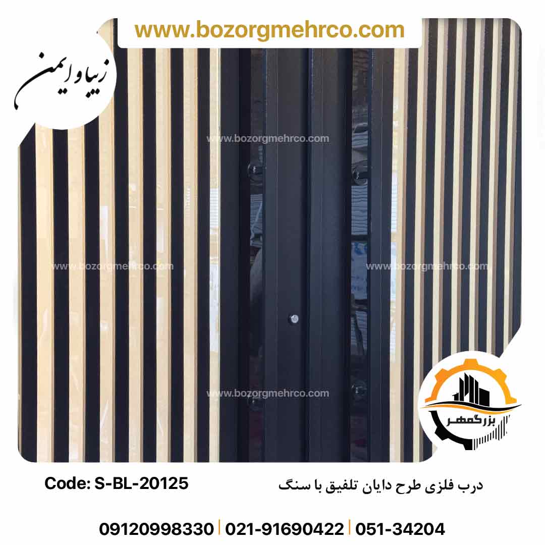 خانه درب فلزی درب حیاط درب دو لنگه طرح دایان تلفیق با سنگ